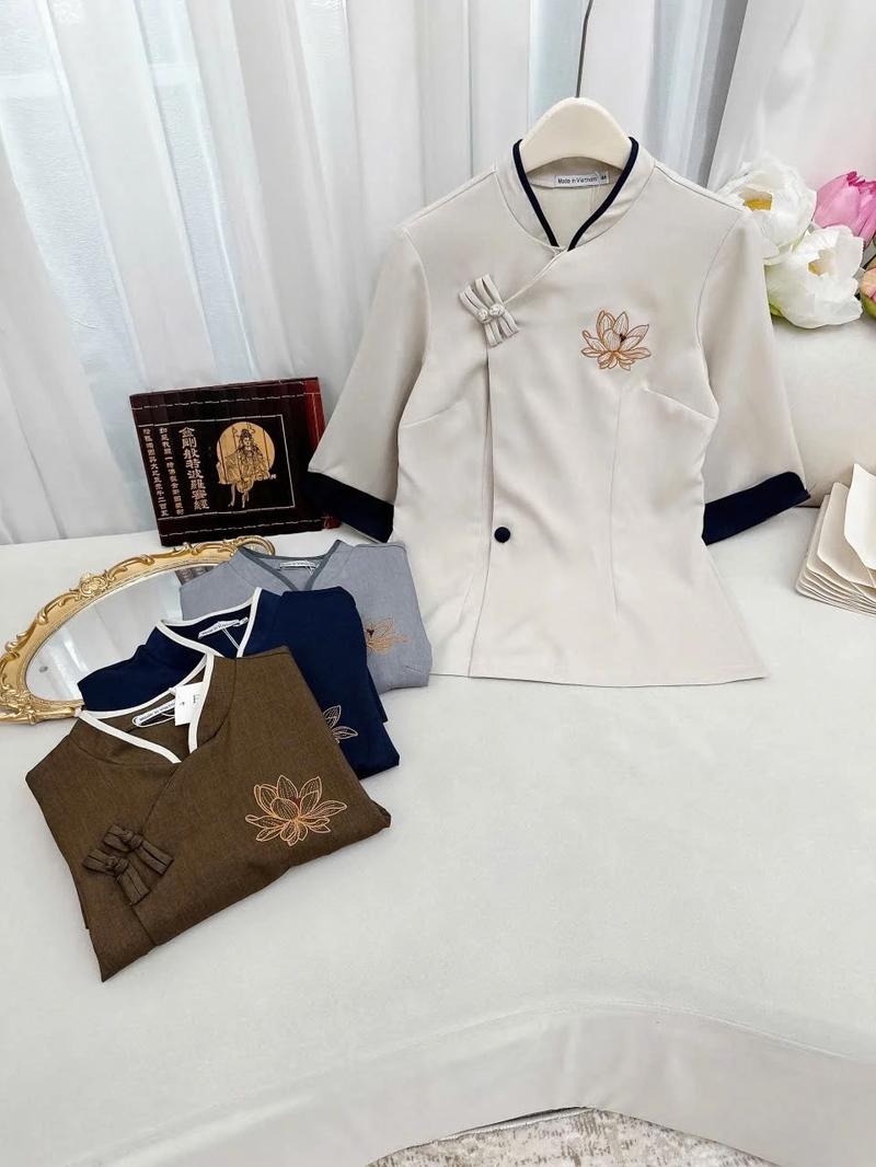 Đánh giá Bộ cotton đũi cổ tàu viền thêu sen G51