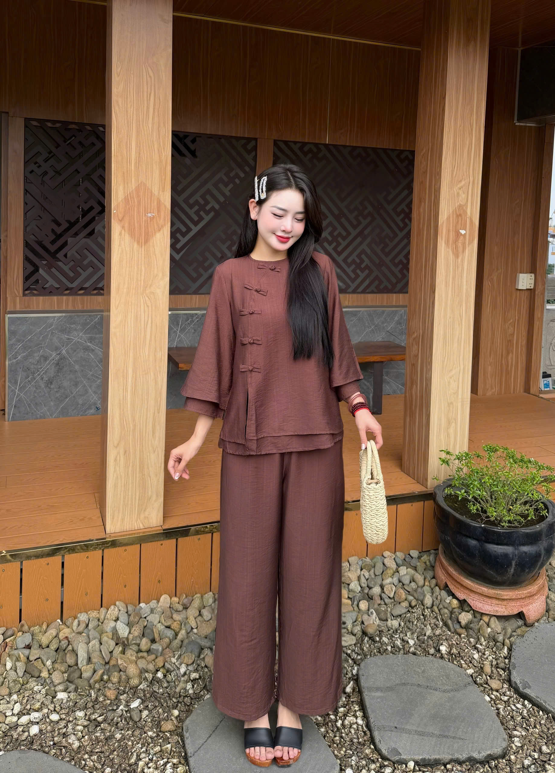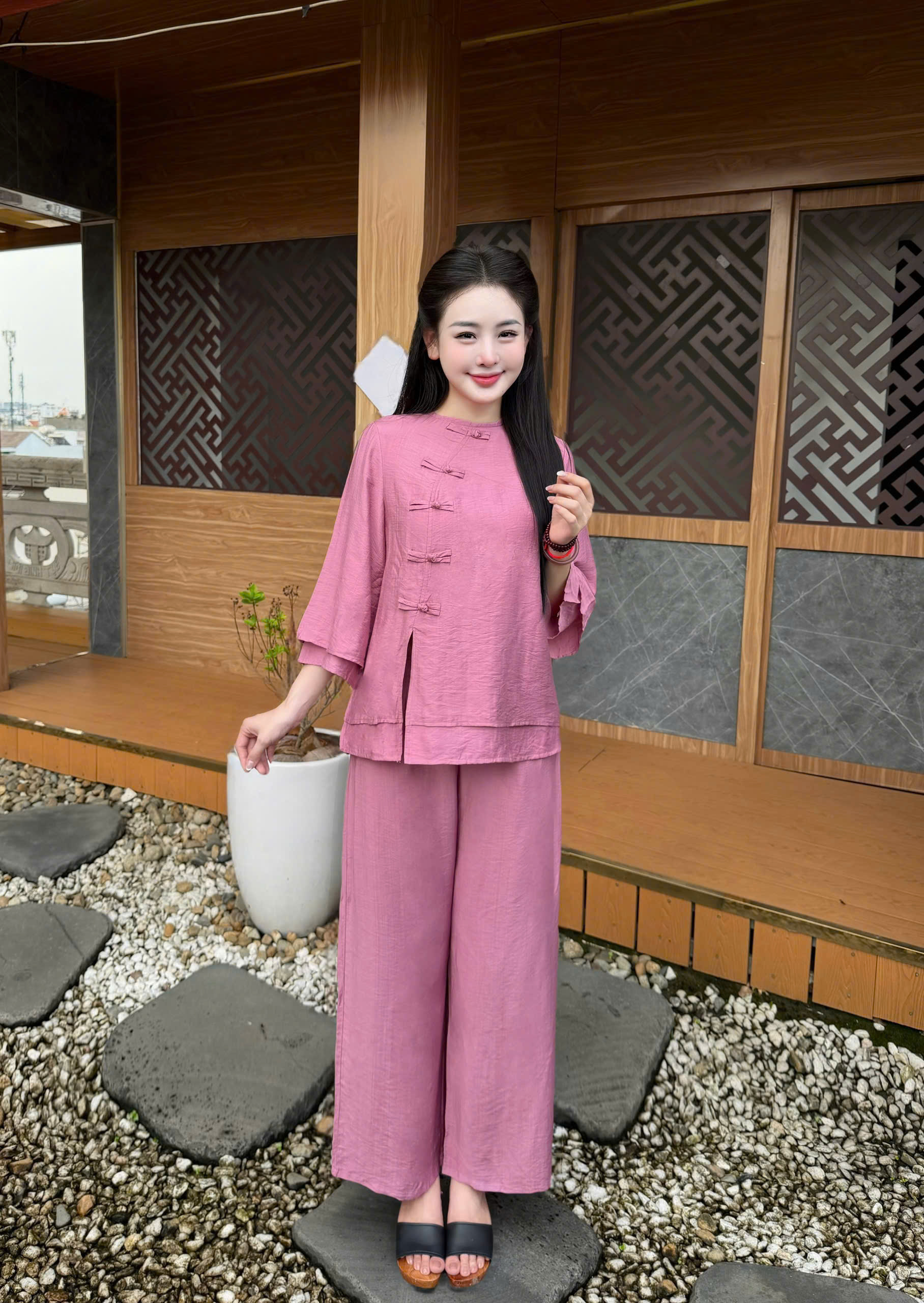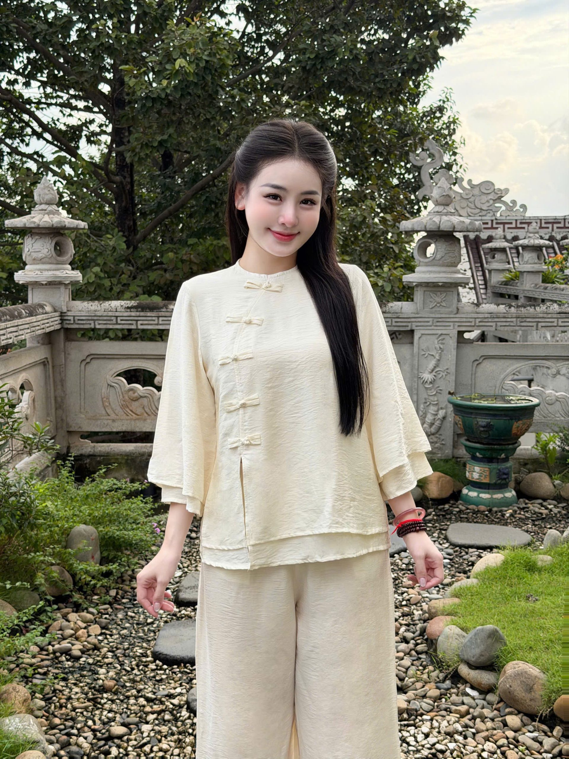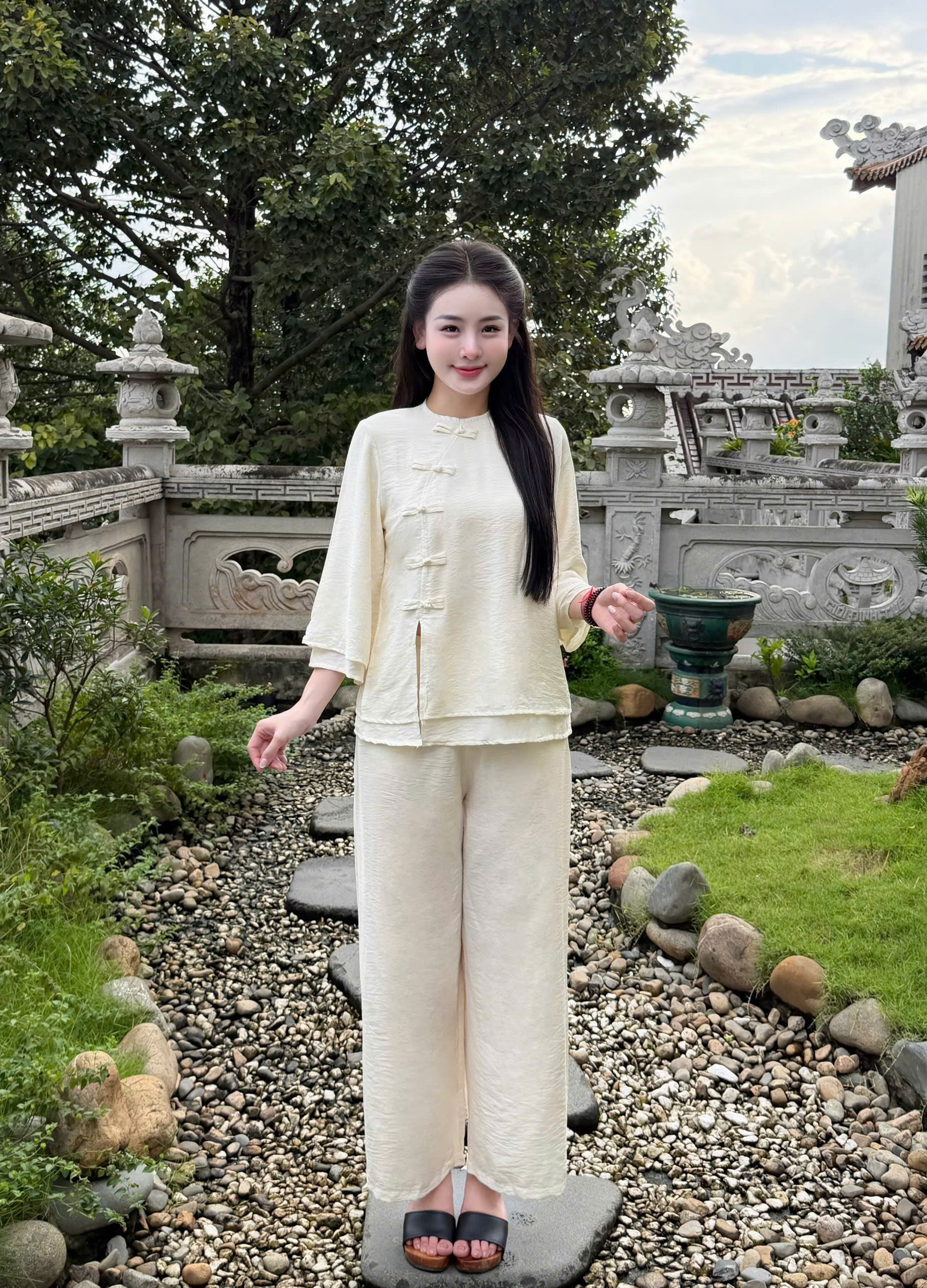 ✔️ Tự tin: Che khuyết điểm bắp tay và vòng bụng nhờ thiết kế 2 lớp thông minh. ✔️ Thoải mái: Chất đũi tơ không gây bí bách, mặc cả ngày vẫn thấy nhẹ nhàng. ✔️ Đa năng: Phù hợp đi chùa, hành hương, ngồi thiền, tập Yoga hoặc đơn giản là mặc nhà tiếp khách rất lịch sự.