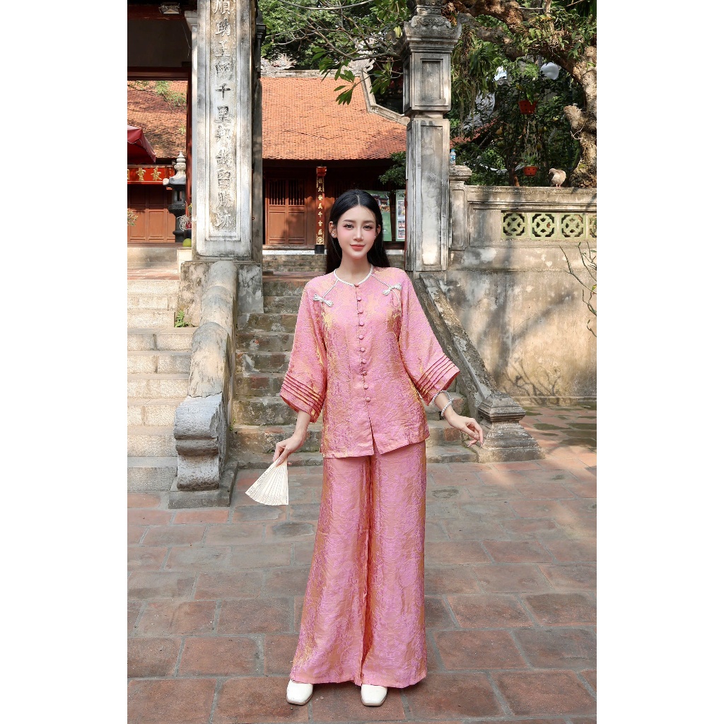 #SenHồng #BộĐồPhápPhục #VảiTằmHànChâu #CổTàuCúcNơ #phápphụcsenhồng